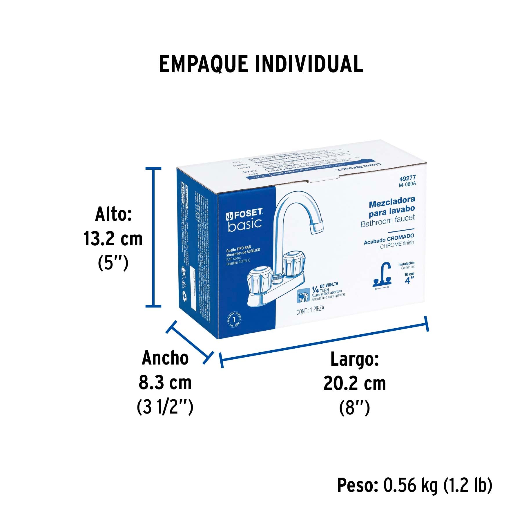 Mezcladora 4' para lavabo, cuello bar, manerales de acrílico