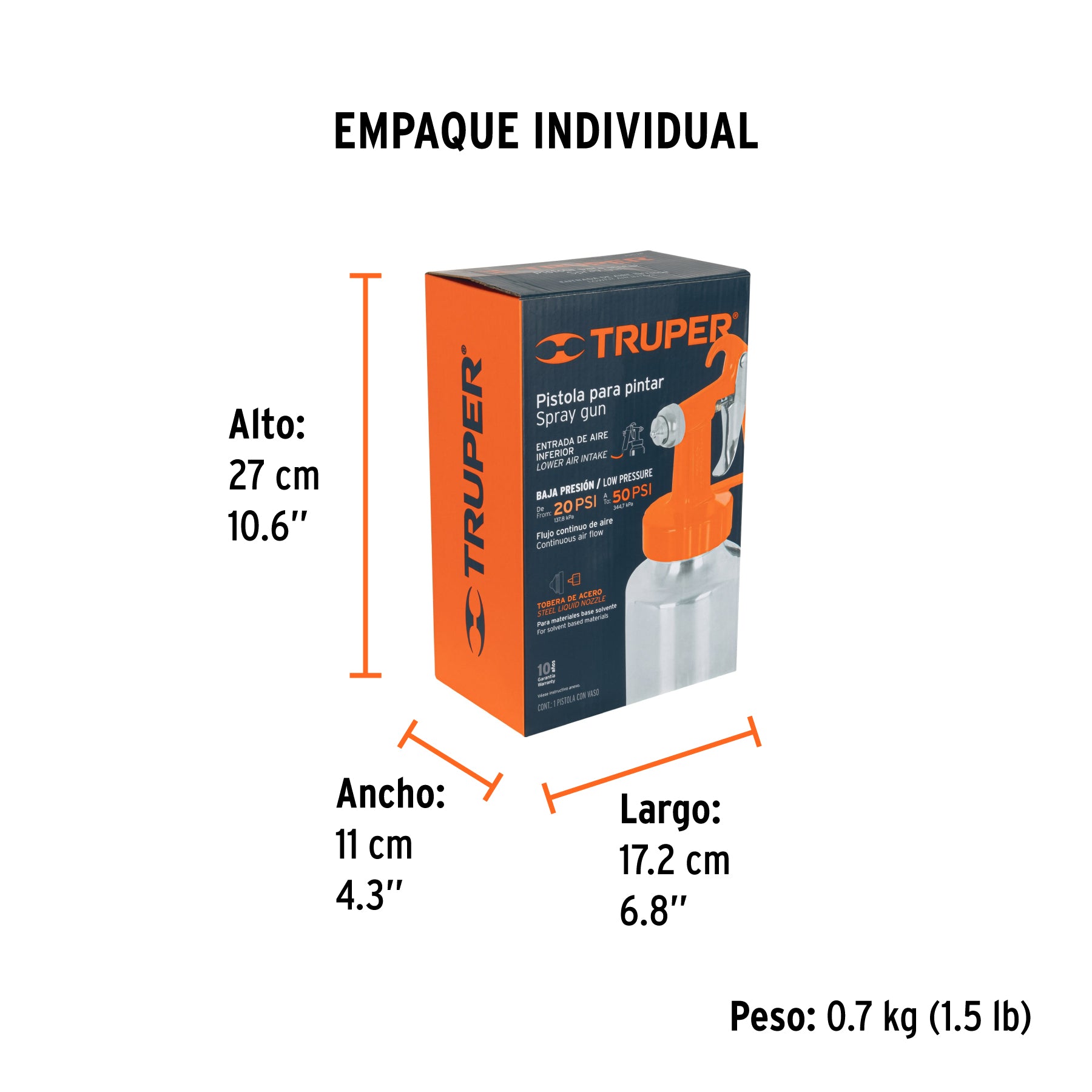 Pistola p/pintar baja presión, 1.5 mm, naranja, entrada inf