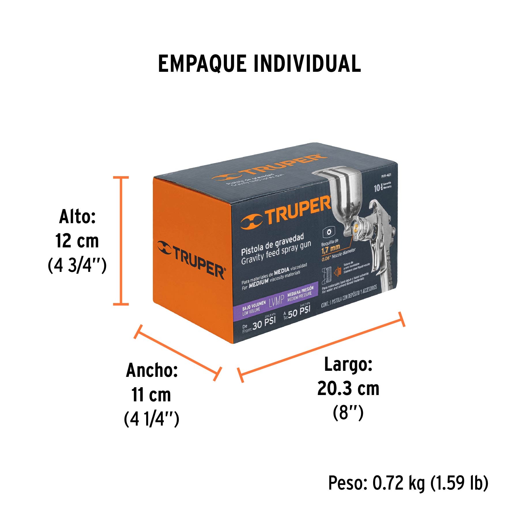 Pistola p/pintar gravedad LVMP vaso aluminio, 1.7 mm, Truper